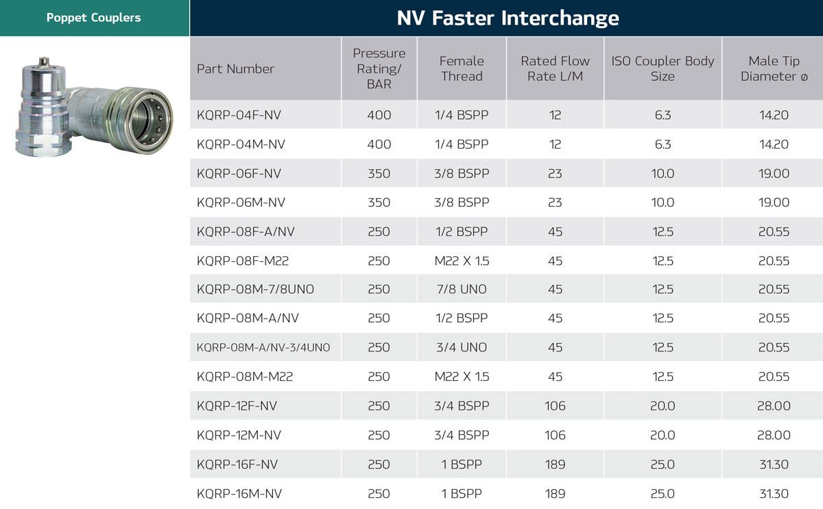 Interchanges with DNP PDV1, Parker 4000 series & Faster NV series. |