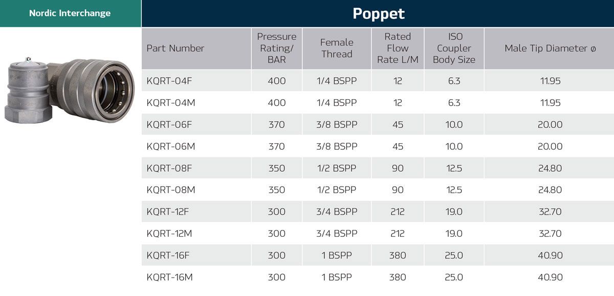 Manufactured from zinc plated carbon steel. Hardened ball contact areas. Double O’ring and backup for extra sealing capacity. Interchanges with Parker Tema T and H series, DNP PTVI, Stucchi IRC series and CEJN 525. |