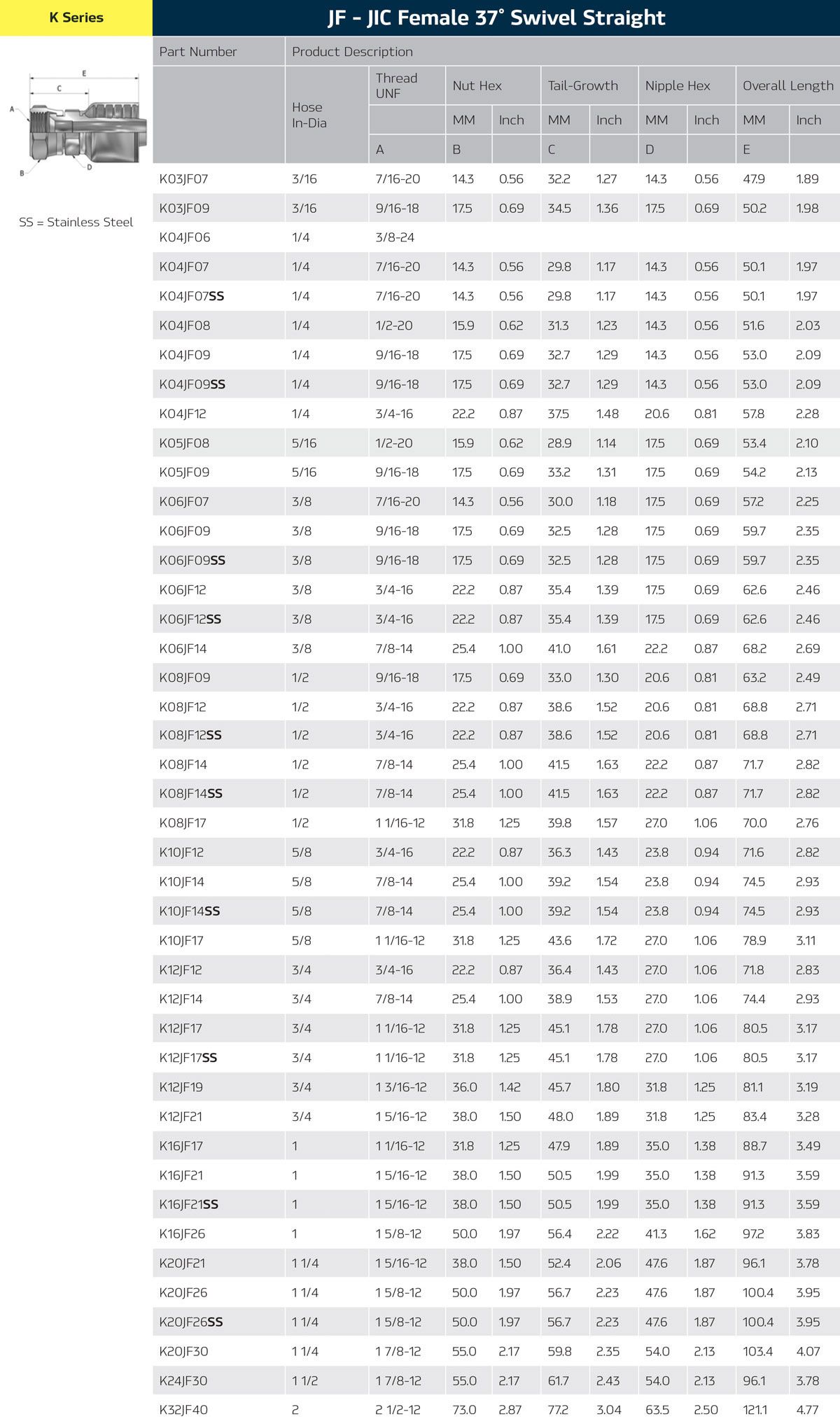 - JIS Komatsu Male X JIC Male