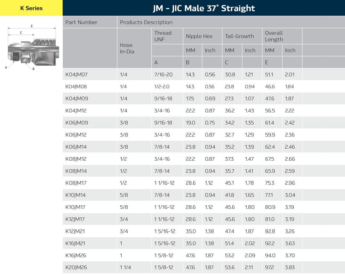 - JIS Komatsu Male X JIC Male