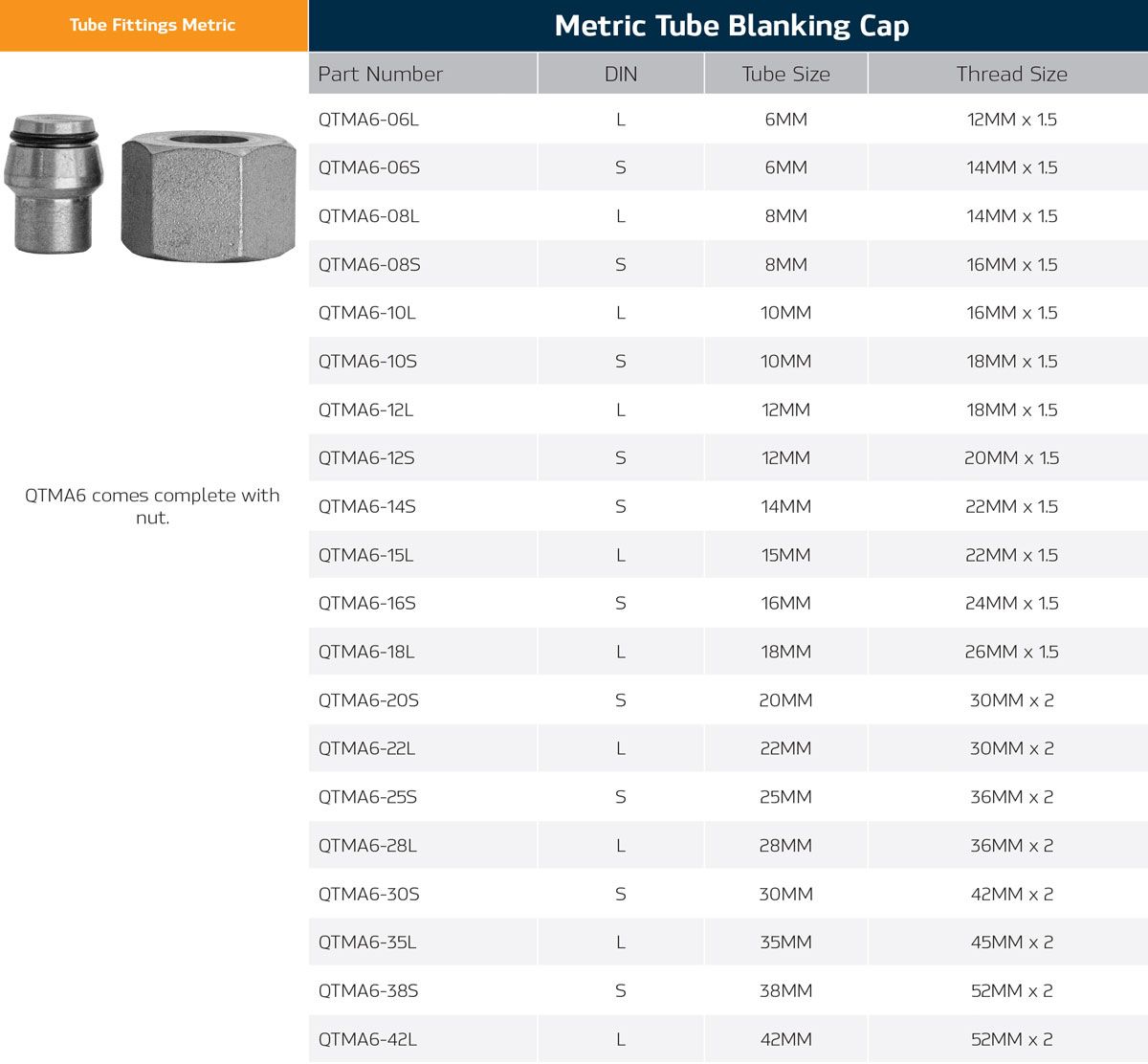 - Metric Tube Blanking insert with nut