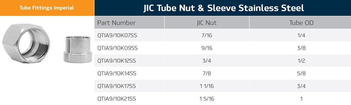 - JIC Tube Nut & Sleeve SS