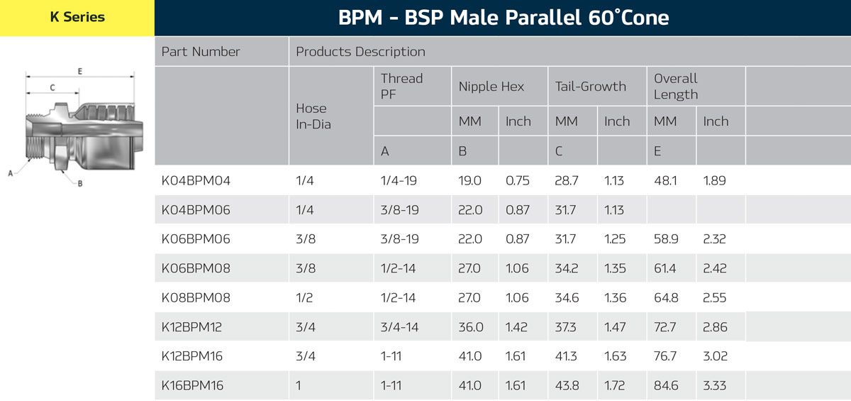 - BSPT-Male X JIS-Male Komatsu